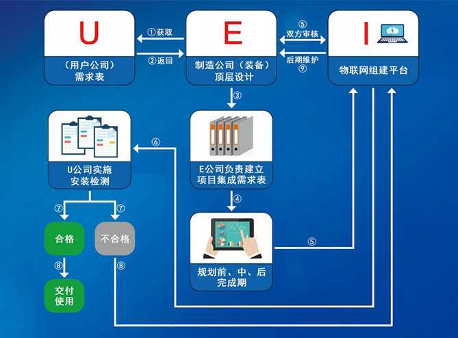 This project is based on the needs of printing machinery user U, printingmachinery equipment manufacturing enterprise E, and Internet of Thingsplatform 1. With printing machinery equipment manufacturing enterprise Eas the core, information collection methods and channels are used to un-derstand the needs of printing machinery user U, and a top-level design isestablished based on E's comprehensive planning to display the require.ments content in a data-driven manner. Then, the Internet of Things plat-form (l) based on U The demand and planning of E enable the interconnec-tion of information content, ultimately achieving intelligent integration of theentire production and business activities.