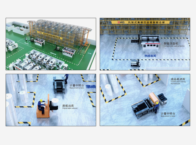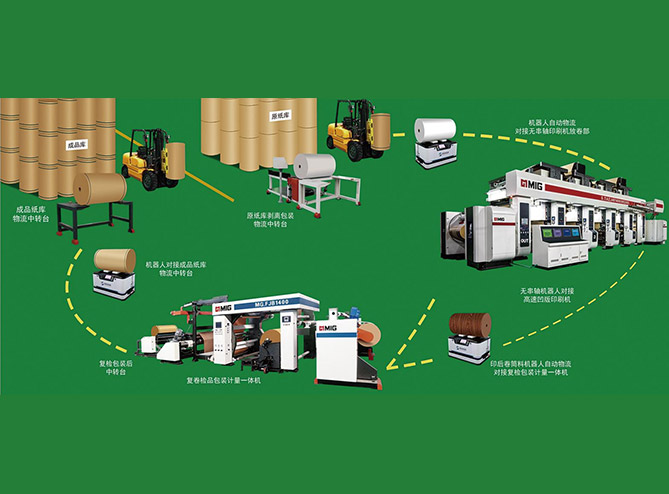 This system is consist of decorative base paper withWCS/WMS、finished decorative paper warehouse (ownedby user)、piggyback jack-up docking AGV.automatic loading/unloading apparatus without axial displacement、inte-grated rewinding、packaging and metering machine andelectrical control svstem network.