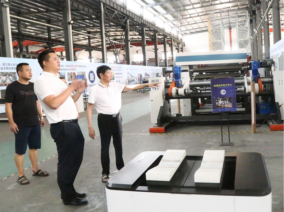 On the morning of August 6, 2022, Xu Yang, deputy director of the Investment Promotion Bureau of Jiangsu Siyang Economic Development Zone, visited Zhejiang Meige Machinery Co., Ltd. Liu Guofang, chairman of MeiG Machinery, and relevant leaders of the company warmly welcomed the visit. First of all, Chairman Liu took Deputy Director Xu to the workshop to visit the intelligent model workshop of Meige Machinery to lead China's decorative paper film development strategy for the third time, and the "Internet of Things Integrated Host for Printing Machinery" based on the top-level design is being prepared for demonstration in the UUI program, the industry's first "intelligent warehousing of printing machine gravure rollers", "integrated machine for rewinding and inspecting product packaging and measurement", "intelligent automatic plate washing machine", "extra-large diameter electronic shaft gravure printing machine", etc. After the visit, entering the discussion and exchange, Chairman Liu Guofang gave a detailed introduction to the company's development history, main business, honors and qualifications, as well as the company's development in recent years, the "printing machinery Internet of Things integrated research and development project UEI scheme based on top-level design" and the integration of wood-based panel veneer decorative materials, the integration of printing and dipping industry chain, and the expansion to industrial advantage blocks and ports, as well as the one-stop service of the Belt and Road Initiative. The implementation of this program will eventually realize the intelligent integration of the entire production and operation activities, and will achieve the third industry leadership on the basis of the company's two leading in the development of Chinese artificial panel decorative material gravure printing machine industry in the first 20 years, so as to promote the high-quality, digital and intelligent development of wood-based panel decorative material gravure printing machine industry.